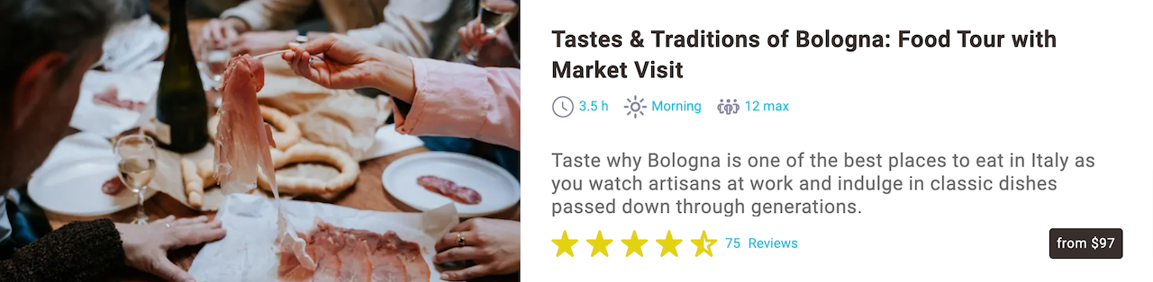▶️ If you’re interested in discovering Bologna’s history through its cuisine, the Bologna Walking Food Tour With Secret Food Tours is a perfect fit.